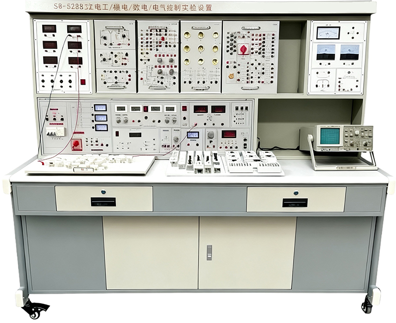 電工電子考核實訓設備,立式電工電子實訓裝置,電工電子實訓臺是能完成“電工學、電工原理、電子技術等課程實驗,又能完成“電工技能訓練、電工實訓、電力拖動控制線路與技能訓練、電子技能訓練等課目的實訓,還可擴展PLC可編程控制、變頻技術等課程實驗實訓。實驗部分在九孔萬能通用實驗板上完成,可完成交直流、振蕩、磁路電路、運算放大器、整流電路、交直流放大電路、數字邏輯電路等實驗項目,實驗項目接近工業現場,動手能力強,實訓方法靈活。